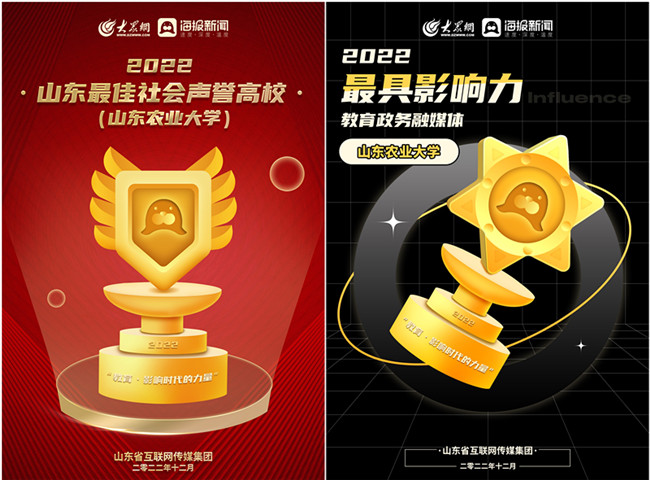 近日,由山东省互联网传媒集团大众网·海报新闻发起的“教育·影响时代的力量”年度评选结果出炉,我校荣获“2022山东最佳社会声誉高校”和“2022山东最具影响力教育政务融媒体”荣誉称号。