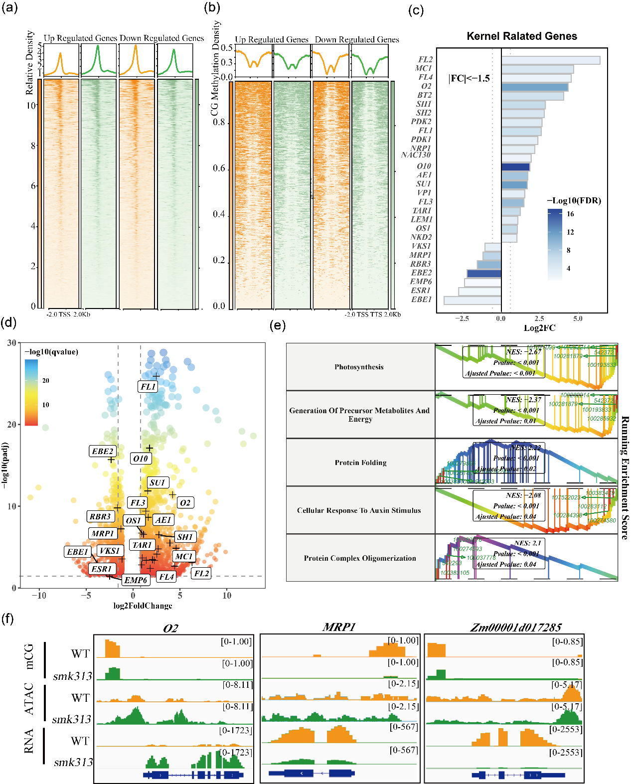 近日,山东农业大学张宪省/赵翔宇团队在The Plant Journal在线发表题为“Role of Methyltransferase 1-Dependent DNA Methylation in Affecting Maize Kernel Development”的研究论文。研究者前期在EMS玉米突变体库中发现了一个籽粒突变体smk313,粒重相较于野生型明显下降,早期籽粒的胚和胚乳发育异常,但是能够进行正常的营养生长和生殖生长。籽粒显微结构显示,smk313突变体籽粒中的胚乳细胞减小,BETL和EAS细胞发育异常。全基因组甲基化测序显示,突变体CG DNA甲基化低于野生型,且存在较多的低DMRs。结合ATAC-seq和RNA-seq数据集,CG甲基化的下降会引起染色质可及性改变进而影响籽粒发育相关基因的表达。以上结果表明,ZmMET1在维持籽粒发育相关基因的CG甲基化的过程中发挥着关键作用。