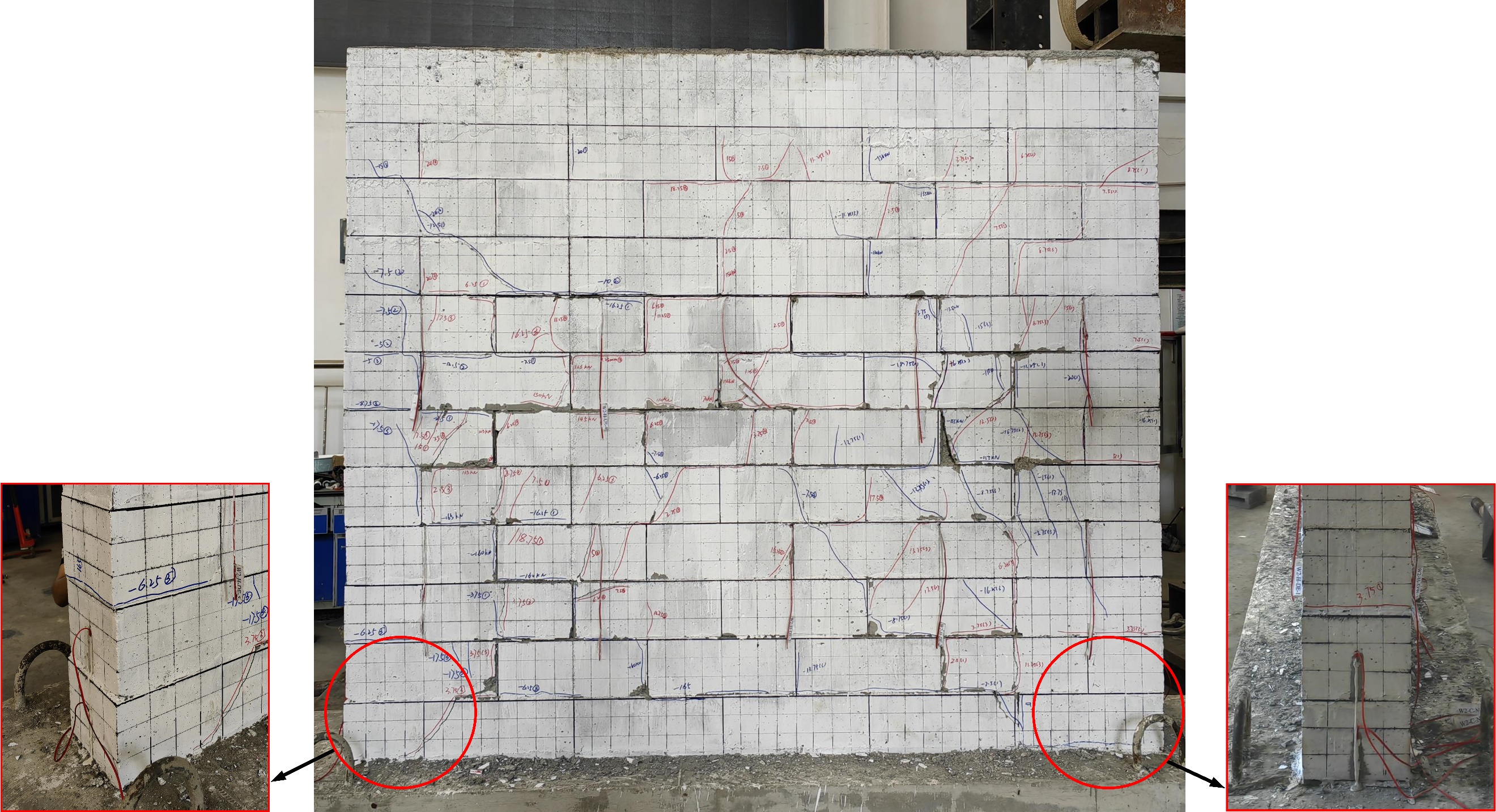 图3 新型复合混凝土砌块承重墙体系失效特征