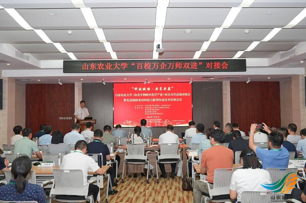 山农融媒7月13日讯 7月12日,“科技赋能·共享共赢”山东农业大学(农业生物纳米化学产业)校企合作高端对接会暨先进碳纳米材料助力新型农业技术发展会议在我校召开。学校党委常委、副校长王勇,山东省教育厅科学技术处副处长、二级调研员矫立峰,泰安市科技局党组成员、四级调研员李华定,泰安市科协党组成员、副主席武建堂等出席开幕式。